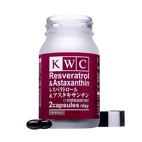 | 栄養成分表示 | [2粒800mgあたり] エネルギー 4.92kcal、たんぱく 質0.22g、脂質 0.38g、炭水化物 0.14g、食塩相当量 0.0008g、レスベラトロール含有赤ワインエキス 80mg、アスタキサンチン含有ヘマトコッカス藻色素 20mg、カテキン含有緑茶抽出物 20mg、松かさエキス 20mg |